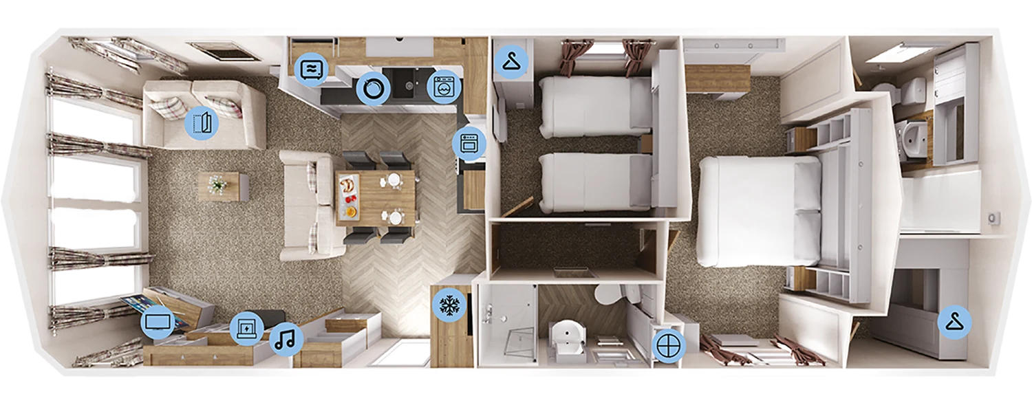 Sized to an impressive 13ft wide for those who like extra space, the Sheraton is a classic holiday home that’s sure to turn heads! It’s the perfect modern retreat away from everyday life and features beautiful design features throughout.