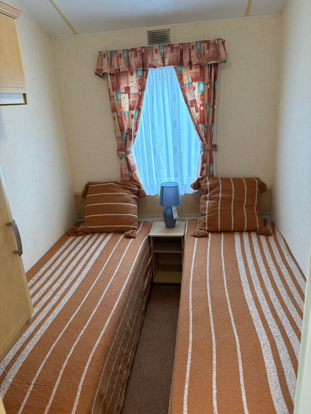- Twin bedroom with single beds, wardrobe and storage