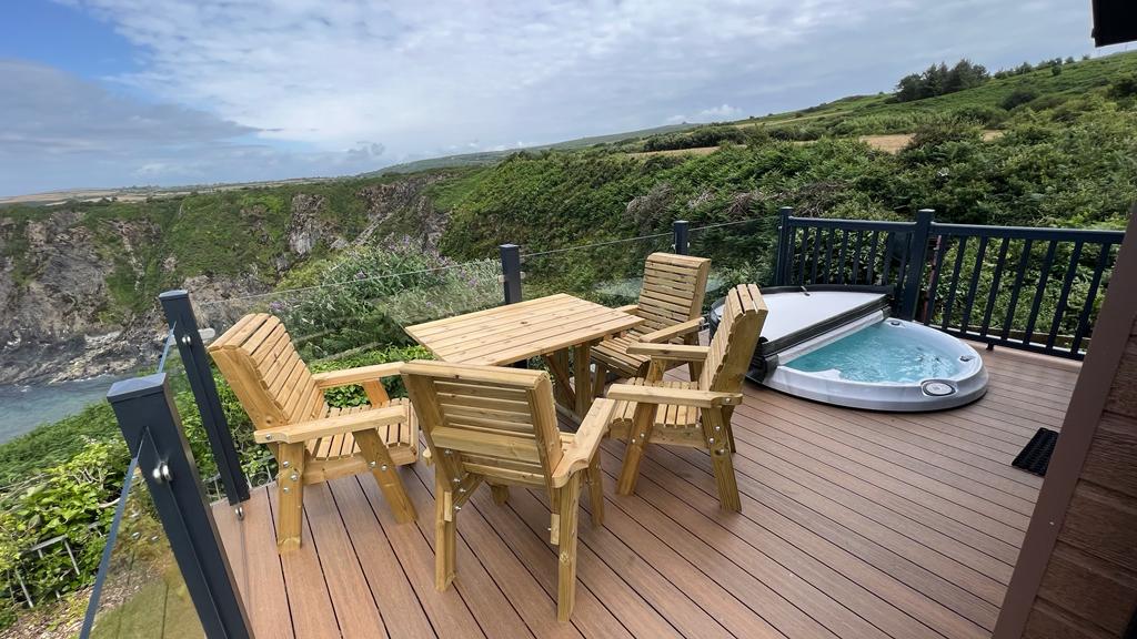 Grugog has an absolutely stunning positioning on the resort, overlooking the sea and cliffs, with an idyllic view from its hot tub. This cosy, bright and modern furnished lodge, makes for superb holiday, with all you need to relax in comfort and style!