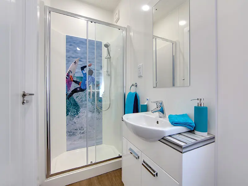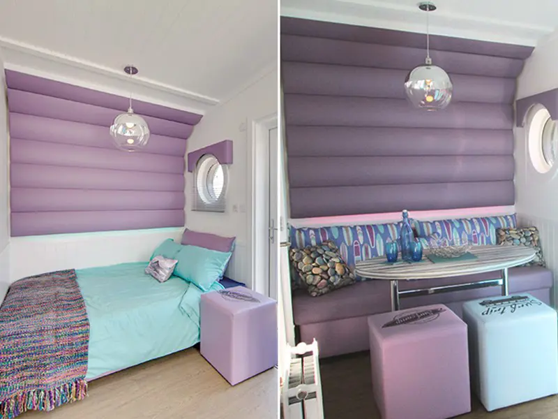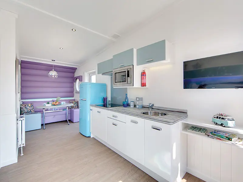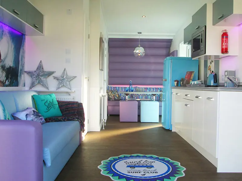 This light and spacious boutique surfer style unit sleeps up to four people, has a studio layout with two double sofa beds. Includes central heating throughout, LED lighting as well as a kitchenette, shower room and lounge. Relax and unwind in this cute and quirky studio lodge with your own hot tub!