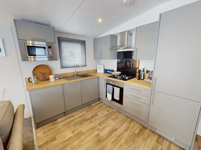 The Norwood Lodge presents a modern open-plan kitchen with integrated microwave, fridge and freezer. Free standing sofas and front opening patio doors make the most of the stunning views from this lodge making it the perfect place to escape the hustle and bustle of daily life. The master bedroom comes complete with king-size bed, walk in wardrobe and en-suite bathroom.