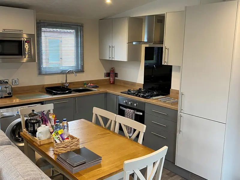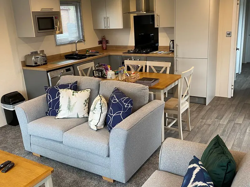 Our beautiful ‘Swift’ lodge sits in a sought after spot on our lovely resort; affording beautiful views to the rolling hills beyond with our nature area nestled behind established hedgerows. Step out of your patio doors to the spacious decking, with sunken Jacuzzi hot-tub and luxury rattan furniture and enjoy being 'at-one' in this beautiful place. Beautifully appointed throughout with every modern convenience.